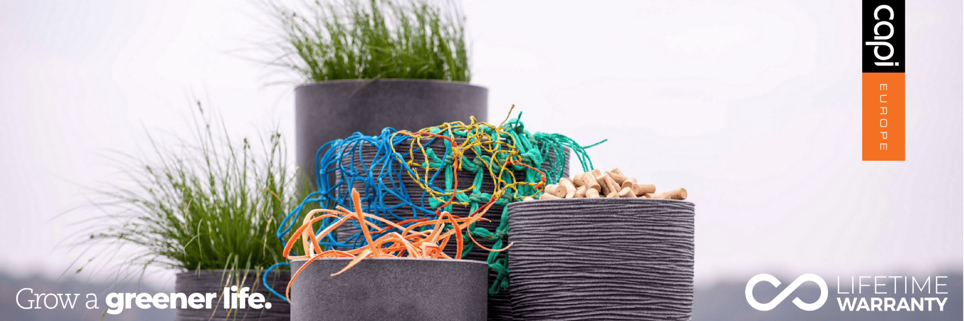Met de Waste NL collectie toont Capi aan dat creatieve innovaties kunnen leiden tot groene oplossingen voor maatschappelijke problemen, en dat allemaal in een elegant designjasje. Een van de meest urgente wereldproblemen is de vervuiling van onze oceanen, vooral door verlaten visnetten. Bij de Waste potten hebben ze deze netten een nieuw doel gegeven. De kurken, lichtgewicht en ideaal voor recycling, vinden hun weg naar de productie van deze nieuwe 100% Waste-bloempotten.